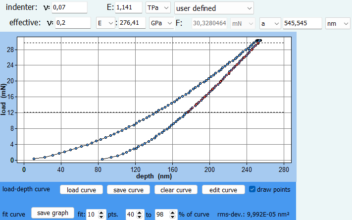 As you can see there is quite a big range (1 µm to 400 µm) suggested, but it’s not connected to the material parameters of the samples to be tested.