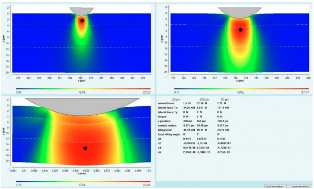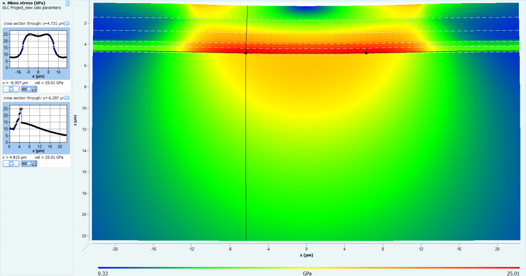 Different contact sizes and loads position maximum von Mises stress at varying depths within the coating (see Fig. 2). In PECVD-deposited DLC coatings, interface layers of distinct materials often promote adhesion by providing a transition layer between the steel substrate and carbon film.