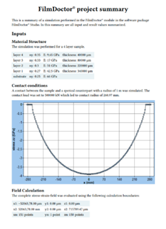 See attached example reports for OPfC® and FilmDoctor® modules, based on our jet runway landing scenario—complete with input data and stress field visuals.