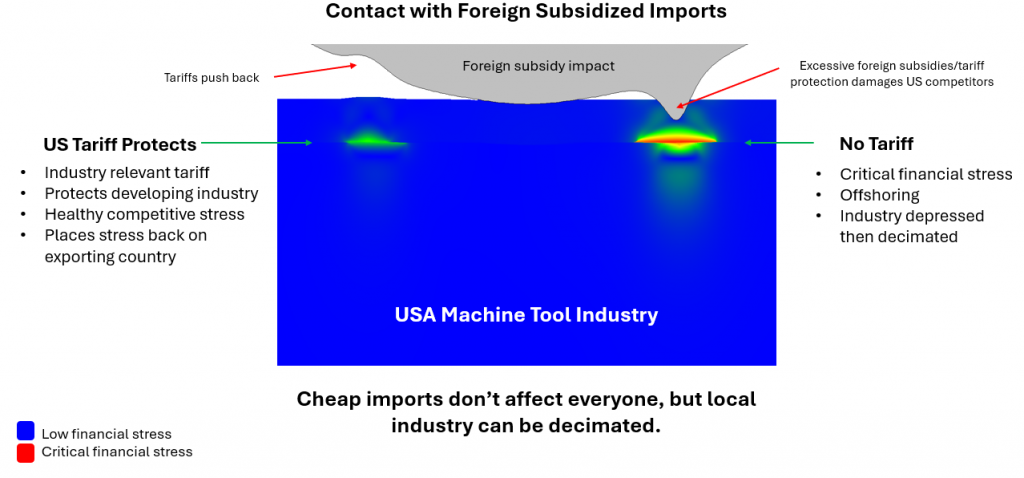 We wanted to understand if USA tariffs can be both beneficial and detrimental to an industry with a view toward the vacuum deposition machine tool suppliers using FilmDoctor® to visualize the resultant stress fields from international trade barriers.