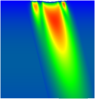 Figure 1: Still and animated gif image of liquid metal 1st wall with flow left to right, showing a parabolic velocity profile from ‘no-slip’ at wall, to flow at the surface. Calculated with FilmDoctor®. Thanks to SIOmec’s Nick Bierwisch for animation support.